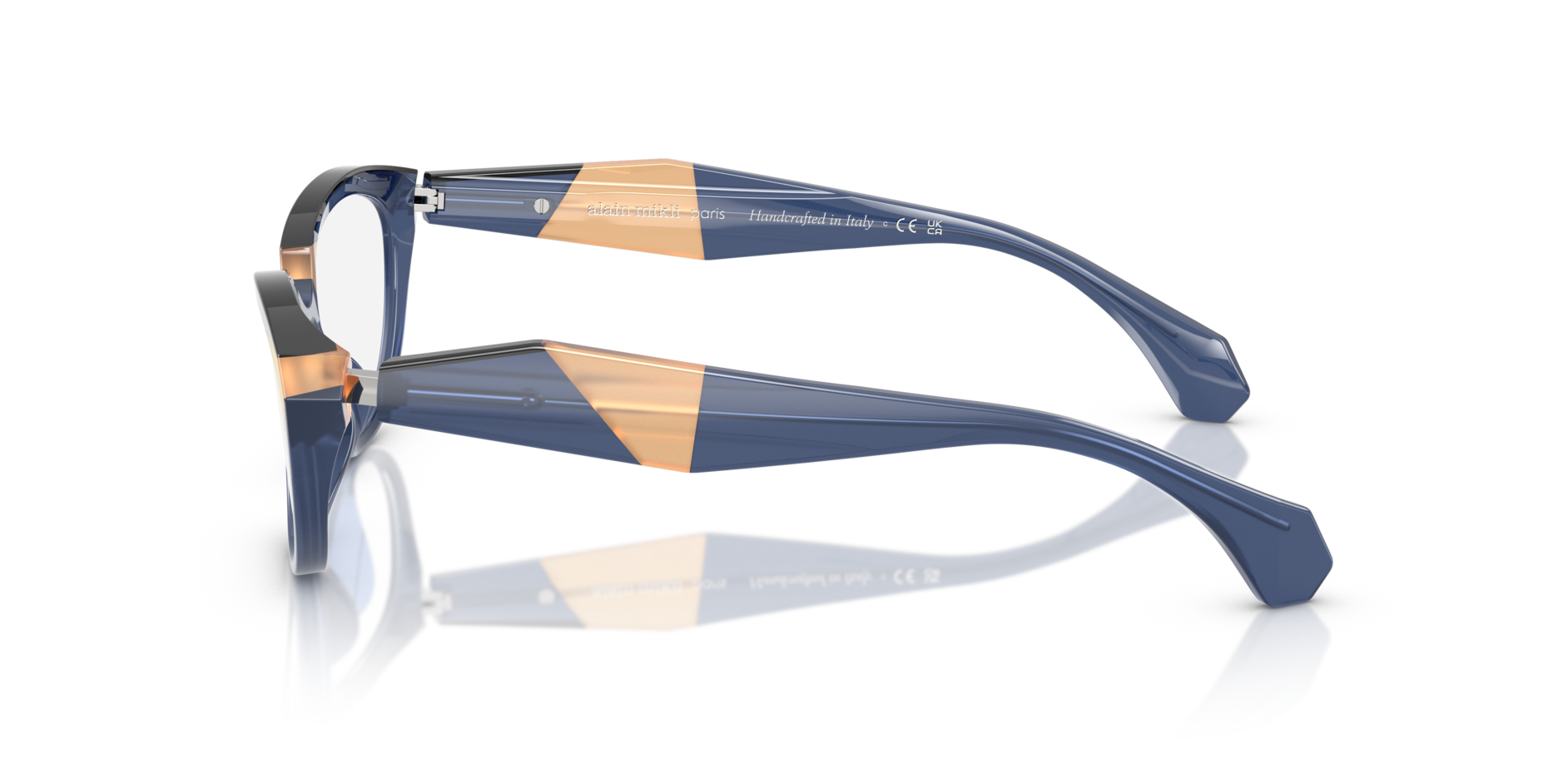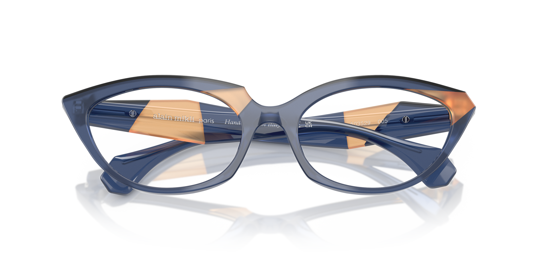 Gli occhiali da vista alain mikli 3529 5 (calibro 56.0, ponte 18.0) si distinguono per la montatura dalla forma cat-eye, che esalta lo sguardo con un look audace e sofisticato. La montatura è caratterizzata da un colore blu profondo, protagonista assoluto del design, arricchito da un elegante dettaglio beige chiaro sulle estremità che conferisce ulteriore raffinatezza e modernità. Le lenti trasparenti lasciano risaltare la struttura distintiva della montatura cat-eye. Sulle aste degli occhiali è presente il logo alain mikli, discreto ma immediatamente riconoscibile, a sottolineare la qualità artigianale e l’esclusività del brand. Il contrasto tra il colore principale della montatura blu e i particolari beige imprime dinamismo e contemporaneità a questi occhiali, rendendoli un accessorio di stile deciso. Il frontale cat-eye della montatura blu esalta linee nette e piene di personalità.