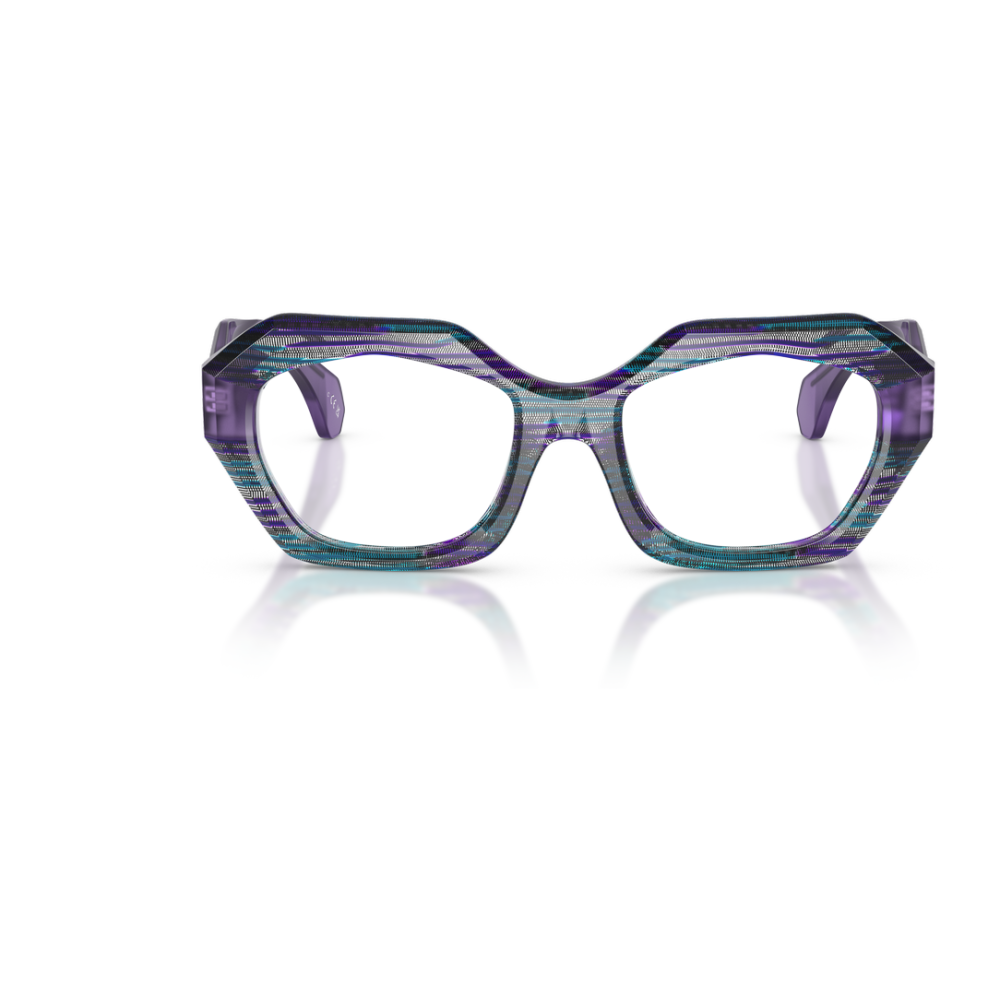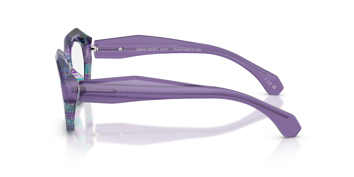 Gli occhiali da vista alain mikli 3543 2 (calibro 49.0, ponte 18.0) esprimono uno stile deciso grazie alla montatura a farfalla, scelta perfetta per chi desidera un look distintivo e artistico. La montatura presenta una texture originale ed elaborata: le tonalità principali sono il viola con sfumature che ricordano il blu, arricchite da dettagli che rendono ogni coppia unica. Questa combinazione di colori sulle montature dona personalità e raffinatezza, perfetta per chi cerca accessori dallo stile contemporaneo e sofisticato. La montatura spessa e geometrica mette in risalto i dettagli cromatici, creando un effetto visivo dinamico e moderno. Le lenti sono trasparenti, ideali per un uso quotidiano, e si abbinano armoniosamente alla palette vivace della montatura. Sulle aste degli occhiali è presente il discreto logo alain mikli, testimonianza di autenticità e prestigio del marchio, valorizzando ulteriormente questo elegante accessorio.