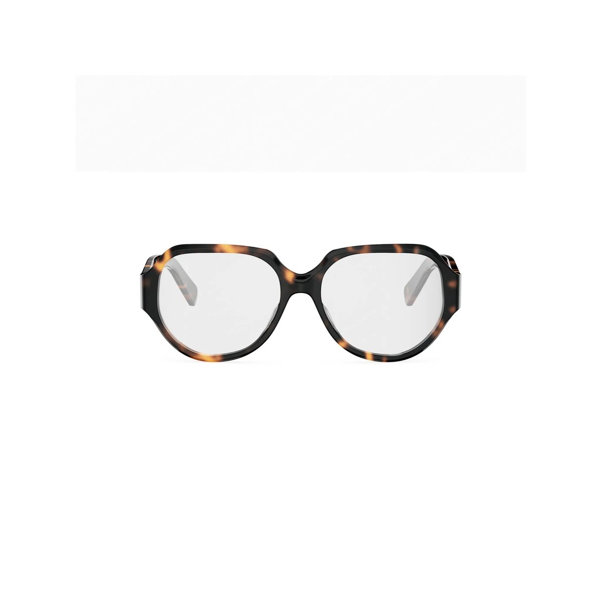 Celine cl50165i 052 sono occhiali da vista dalla montatura squadrata con profilo ampio e deciso, caratterizzata da volumi sfaccettati che alleggeriscono il frontale. La colorazione tartarugata alterna toni scuri e ambra, creando un effetto profondo e irregolare che valorizza la costruzione del modello. Le lenti demo trasparenti mettono in risalto il disegno pulito del ponte e l’ampia superficie del frontale calibro 55, pensato per una presenza marcata sul viso. Sulle aste spesse spicca il dettaglio distintivo del logo triomphe in metallo dorato, applicato in evidenza vicino alla cerniera e ben integrato nel motivo havana. I terminali curvati completano una linea continua e strutturata, mentre il ponte da 16 mm contribuisce a un assetto equilibrato e contemporaneo, con una forte identità visiva tipica di celine.