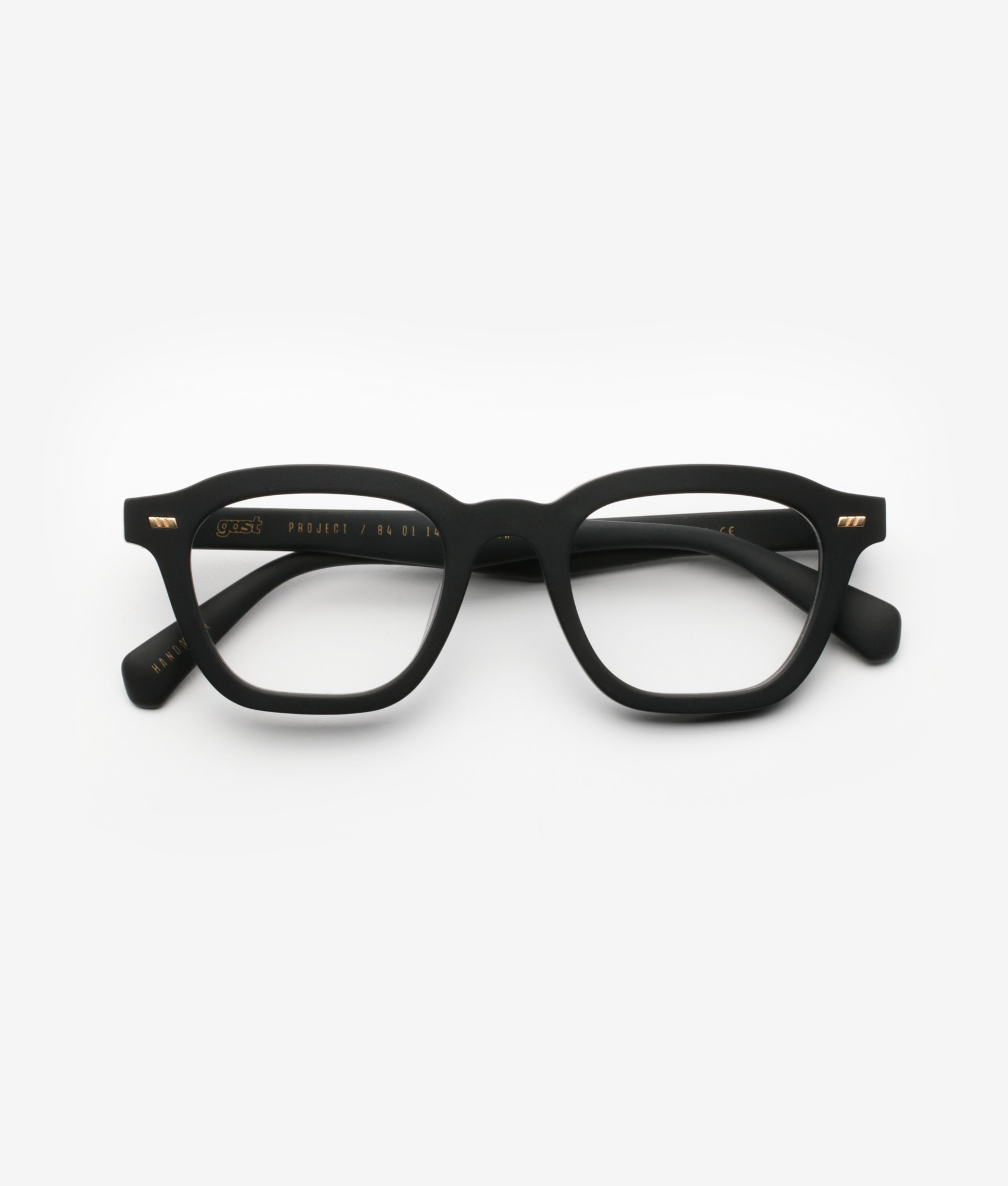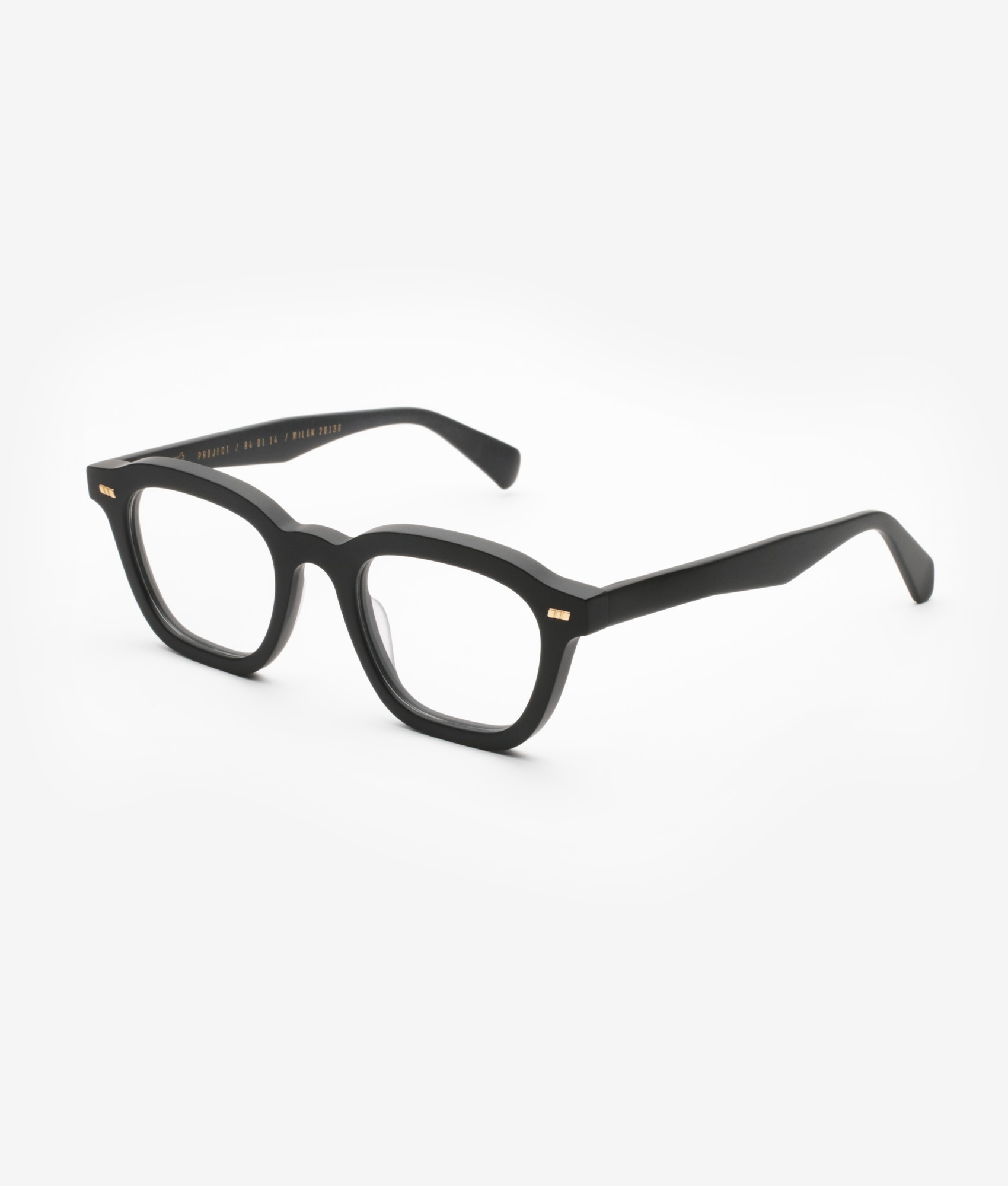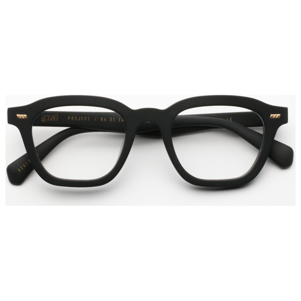 Gast mente opt matte black è un occhiale da vista dalla montatura squadrata in nero opaco, con volumi pieni e un frontale deciso che bilancia il calibro 48 con un ponte da 22 mm. Realizzato in acetato, presenta una costruzione compatta e spessa, con profilo geometrico addolcito da angoli leggermente smussati e da un ponte sagomato che aggiunge carattere al disegno. Le lenti in demo trasparente mettono in evidenza la pulizia della linea frontale e l’impostazione ottica del modello. Sui due lati del frontale spiccano piccoli inserti metallici dorati, ripresi con discrezione anche in prossimità della cerniera, mentre l’interno dell’asta mostra la firma tecnica del modello stampata in oro. Le aste larghe, scolpite e affusolate verso i terminali, rafforzano l’estetica compatta e contemporanea di questa versione matte black.