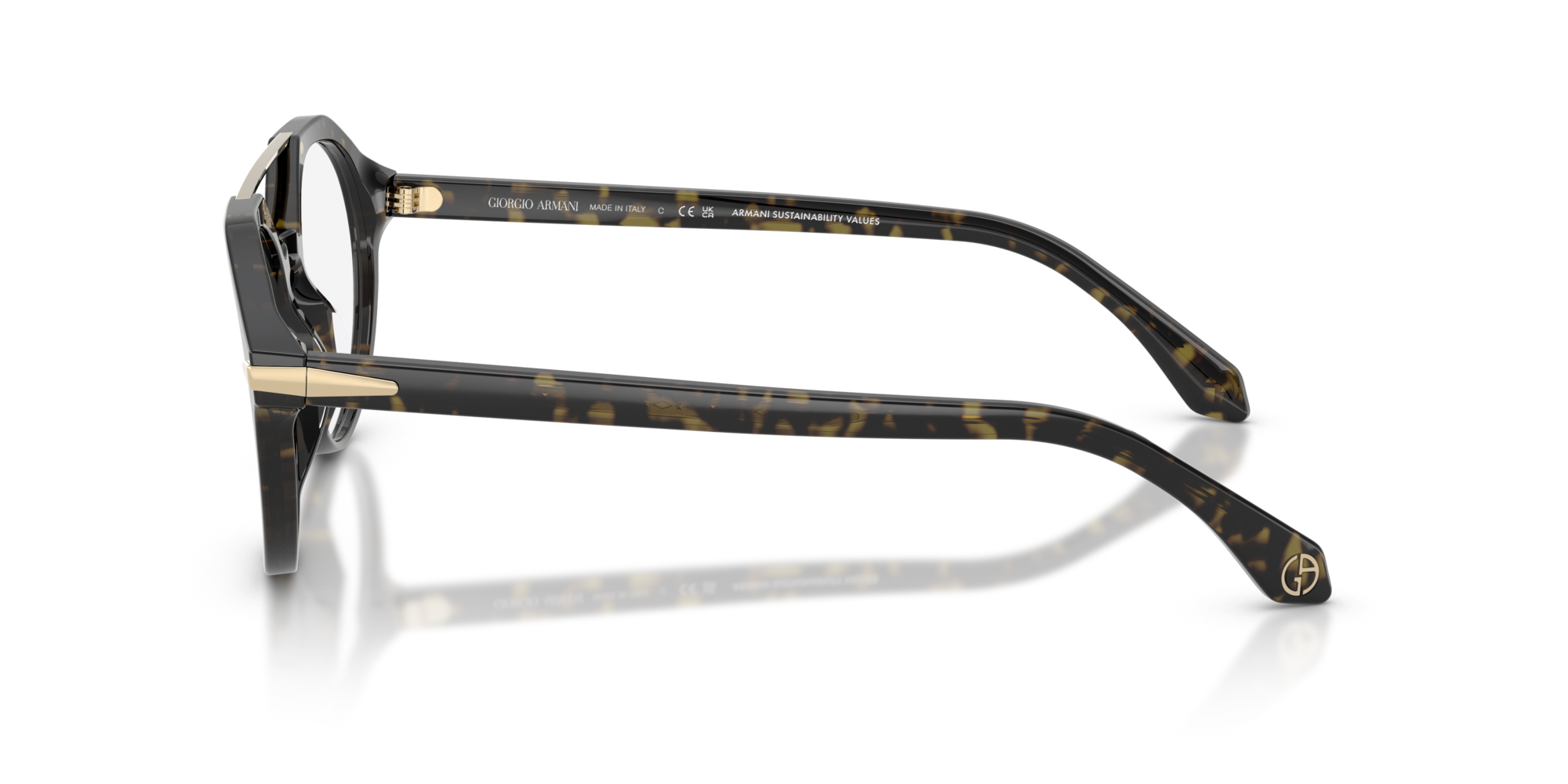 Giorgio armani 7278u vista è un occhiale da vista con montatura rotonda in acetato, proposta in una tonalità tartarugata scura con sfumature calde visibili su frontale e aste. Il design si distingue per il doppio ponte superiore in metallo color oro, elemento che alleggerisce il profilo e crea un contrasto netto con la struttura piena del frontale. Le lenti demo trasparenti mantengono l’aspetto pulito del modello e valorizzano la costruzione geometrica del cerchio, leggermente sfaccettata nella parte alta. Sulle aste compaiono dettagli metallici dorati in prossimità della cerniera, integrati come inserti decorativi dal taglio essenziale, mentre il logo giorgio armani è visibile all’interno dell’asta. Il calibro 51 e il ponte da 19 mm definiscono un fitting equilibrato, adatto a chi cerca una forma rotonda contemporanea con richiami vintage ben calibrati.