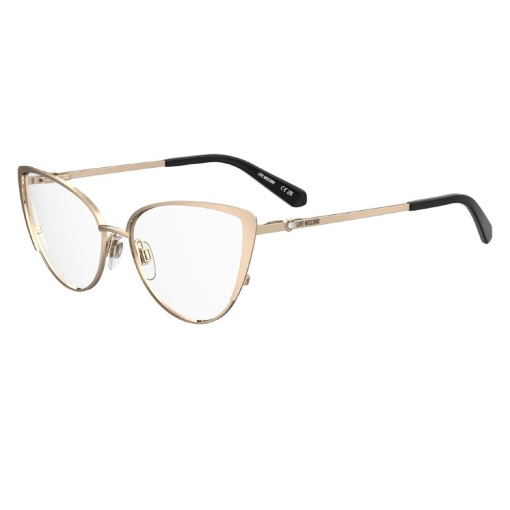 Moschino mol641 000/16 rose gold è un occhiale da vista con montatura cat-eye dal profilo sottile e allungato, caratterizzato da un delicato tono rosa oro. La struttura in metallo mette in evidenza il disegno leggero del frontale, con bordi affusolati che salgono verso l’esterno e ponte sottile con naselli regolabili. Le lenti demo appaiono trasparenti, lasciando risaltare la linea pulita della montatura e la finitura luminosa del metallo. Sulle aste lineari spicca il logo love moschino, inserito vicino alla cerniera insieme a un piccolo dettaglio decorativo tondo, mentre i terminali neri creano un contrasto netto con il rose gold del resto della struttura. Il calibro 57 e il ponte 16 contribuiscono a un assetto slanciato, pensato per valorizzare il taglio grafico e femminile di questo modello.
