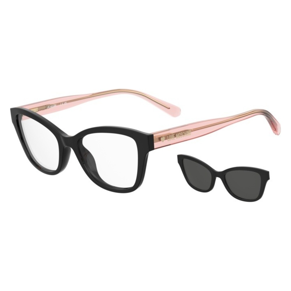 Occhiali da vista moschino mol657/c/tn 3h2/17 black pink dal design distintivo, caratterizzati da una montatura dalla forma cat-eye, in grado di valorizzare e donare personalità al volto. La montatura è proposta in una raffinata combinazione di colori: la parte frontale si distingue per la tonalità nera, che esalta le linee decise e dona eleganza, mentre le aste sfumano delicatamente verso il rosa, creando un contrasto moderno e femminile. Sulle aste spicca la presenza del logo “love moschino” dorato, ben visibile e posizionato in modo da conferire un tocco glamour e riconoscibile al modello. Le lenti, nella versione vista, risultano trasparenti, pensate per un utilizzo quotidiano e versatile, mentre una coppia aggiuntiva di lenti scure, dalla forma cat-eye e dal colore scuro, permette di trasformare gli occhiali in un accessorio perfetto anche per il sole. Dimensioni: calibro 49.0, ponte 17.0.