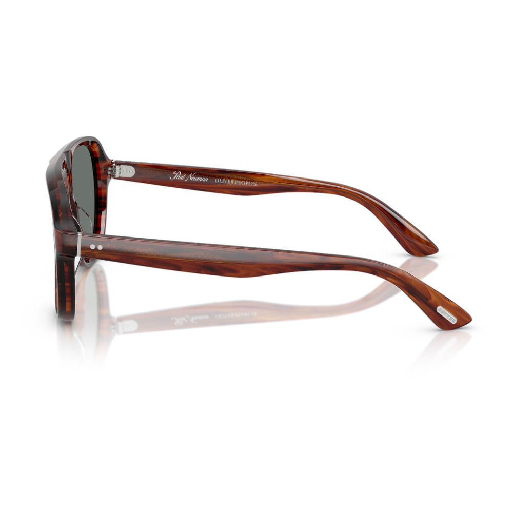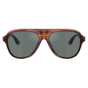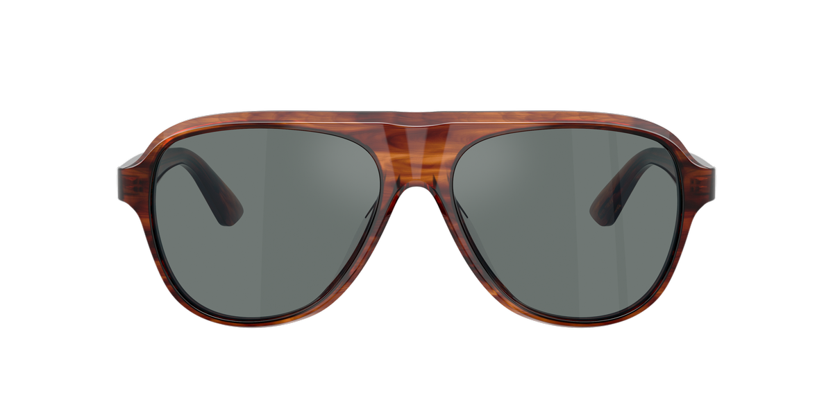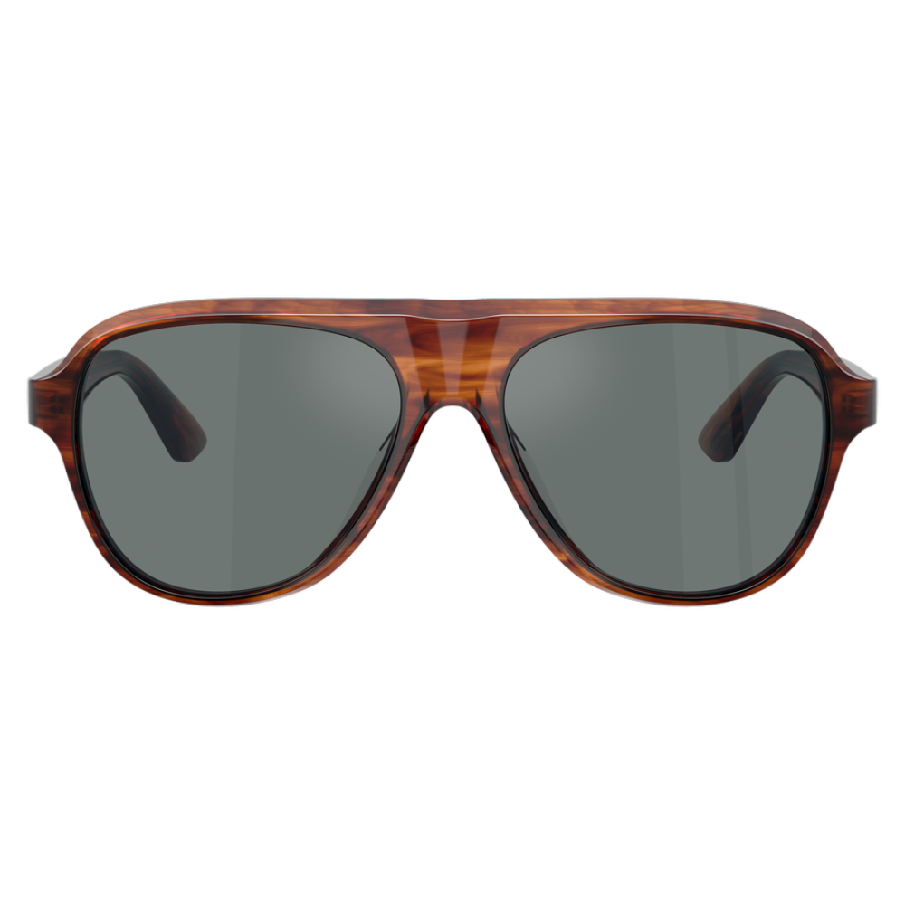 Oliver peoples 5581su sole 1721w5 è un occhiale da sole con montatura aviator in tonalità marrone sfumata, caratterizzata da un effetto traslucido che mette in risalto le venature del materiale. La struttura in acetato, con calibro 57 e ponte 16, sviluppa un frontale ampio con doppio ponte scolpito e profilo morbido, per un’impronta decisa ma pulita. Le lenti sono grigio scuro, uniformi, e creano un contrasto netto con la calda trasparenza della montatura. Le aste, anch’esse in acetato marrone semi-trasparente, presentano la classica coppia di pin metallici vicino al frontale, dettaglio distintivo del marchio, mentre all’interno si intravede la firma oliver peoples. Il design mantiene proporzioni generose e una linea continua tra frontale e aste, con terminali sottili che alleggeriscono visivamente il profilo complessivo.