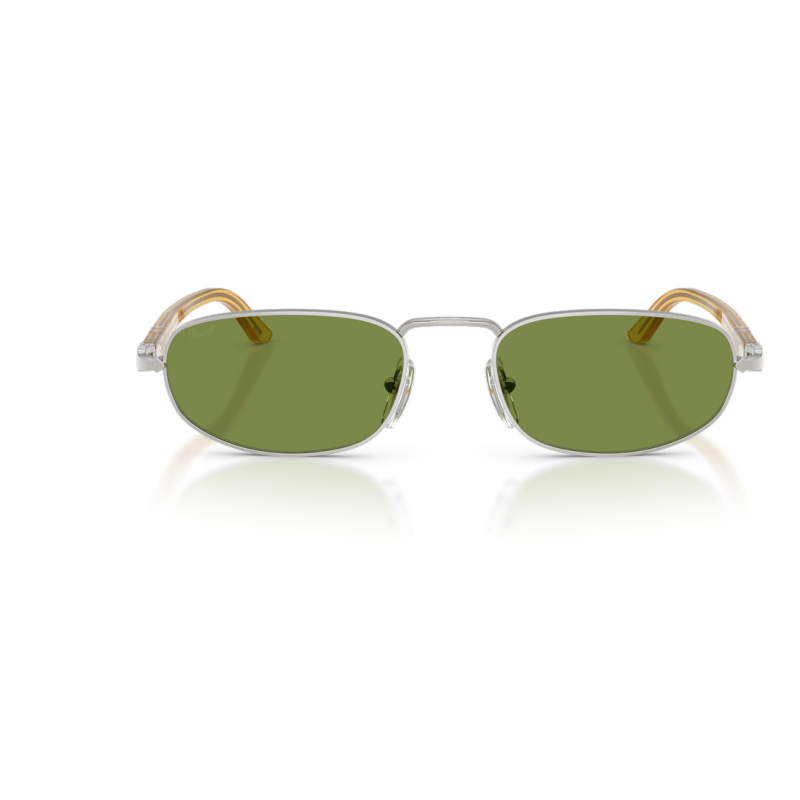 Persol 1025s sole 513/53 presenta una montatura rettangolare dal profilo sottile e lineare, pensata per un look pulito e deciso. Il frontale in metallo mostra una finitura grigio canna di fucile che sottolinea la geometria essenziale del modello, mentre le lenti in tonalità marrone chiaro donano un contrasto caldo e uniforme. La struttura in metallo è alleggerita da naselli regolabili trasparenti, che migliorano la vestibilità sul ponte da 22 mm. Le aste sottili riprendono il tono freddo del frontale e si completano con terminali sfumati dall’effetto tartarugato trasparente, dettaglio che aggiunge profondità visiva al design. Sull’asta è presente il logo persol, discreto ma ben leggibile, inserito vicino all’interno della struttura. Il calibro da 54 mm contribuisce a un’impostazione equilibrata, con una copertura ampia ma ordinata sul viso.