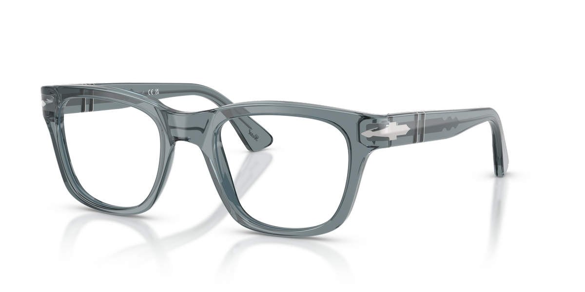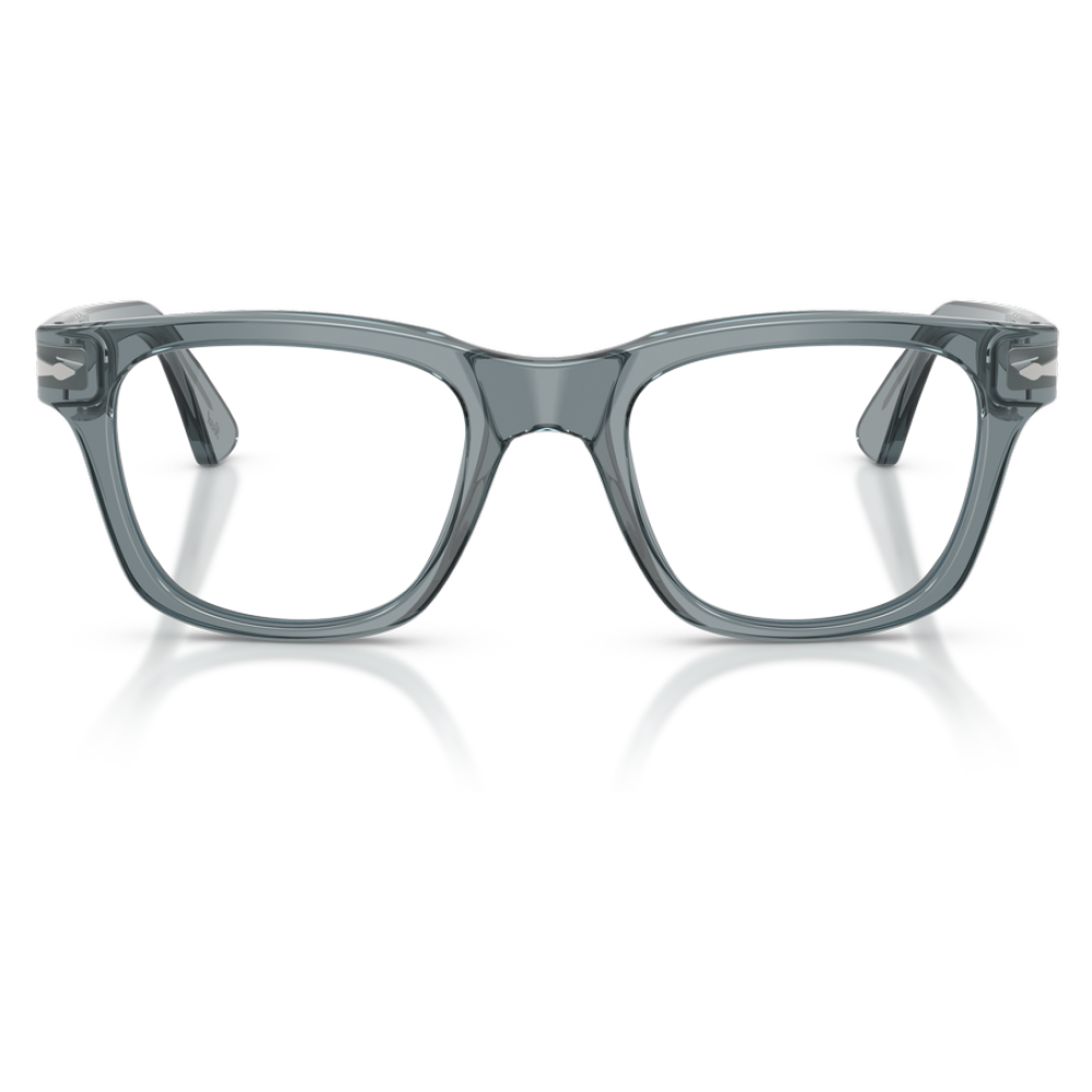 Persol 3389v vista è un occhiale da vista con montatura squadrata in acetato trasparente, proposta in una tonalità grigio fumo che lascia intravedere l’anima interna della struttura. Il frontale pieno e ben definito è bilanciato da linee morbide sugli angoli, per un profilo deciso ma pulito. Le lenti demo sono trasparenti, pensate per essere sostituite con lenti correttive personalizzate. Sulle aste spicca l’iconica freccia persol in metallo, inserita in modo evidente nel materiale traslucido e accompagnata dal sistema meflecto, dettaglio distintivo del marchio che contribuisce alla flessibilità e al comfort della calzata. Il ponte da 21 mm e il calibro 51 mm rendono questo modello adatto a chi cerca proporzioni equilibrate, con una presenza visiva netta e contemporanea tipica del linguaggio estetico persol.