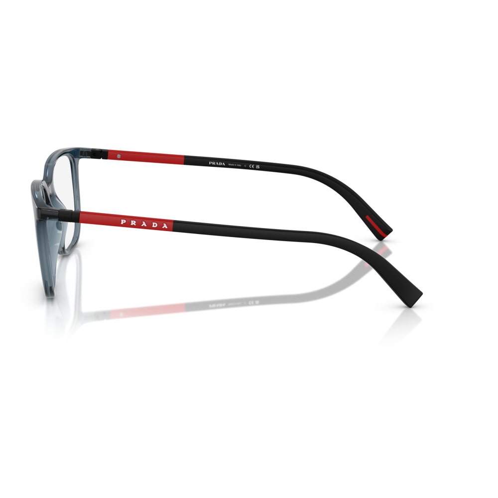 Prada linea rossa 04rv vista czh1o1 è un occhiale da vista dalla montatura squadrata, con frontale in una tonalità blu trasparente che alleggerisce il volume del profilo e mette in evidenza le linee nette del design. La struttura è realizzata in propionato, materiale che contribuisce a un aspetto compatto e uniforme, con un fit definito dal calibro 50 e ponte 19. Le lenti demo sono trasparenti, pensate per essere sostituite con lenti correttive personalizzate. Le aste introducono un contrasto deciso: parte iniziale nera, sezione centrale rossa con logo prada in evidenza e terminali neri con inserto rosso interno. Questo gioco cromatico richiama il linguaggio sportivo di linea rossa, mentre il frontale ampio e regolare mantiene un’impronta pulita e contemporanea, adatta a chi cerca una presenza visiva marcata senza ricorrere a forme estreme.