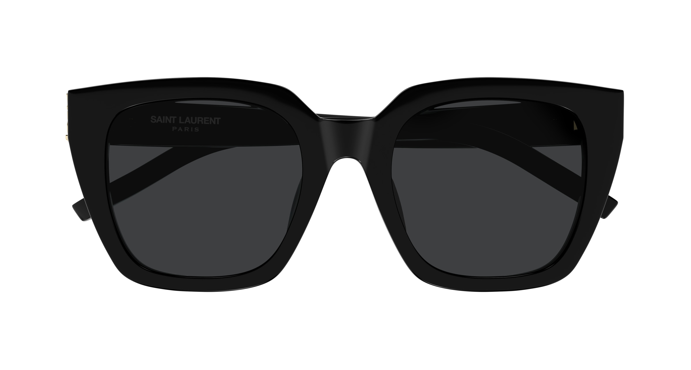 Saint laurent sl m143 001 black black black è un occhiale da sole dalla montatura squadrata in nero pieno, con volumi decisi e profilo ampio che enfatizza la linea frontale. Realizzato in acetato riciclato, presenta una costruzione spessa e scolpita, con ponte alto e aste larghe che danno continuità al design compatto del frontale. Le lenti sono nere scure, perfettamente coordinate alla montatura total black per un effetto monocromatico netto. Sulle aste compare il logo saint laurent paris stampato all’interno, mentre vicino alla cerniera spicca il dettaglio metallico dorato con monogramma ysl, inserito come elemento decorativo e strutturale. Il calibro 51 e il ponte 23 definiscono proporzioni equilibrate su una silhouette importante, pensata per chi cerca un modello dal carattere grafico e contemporaneo.