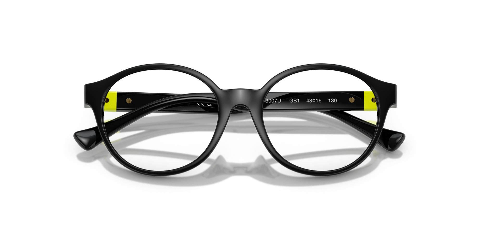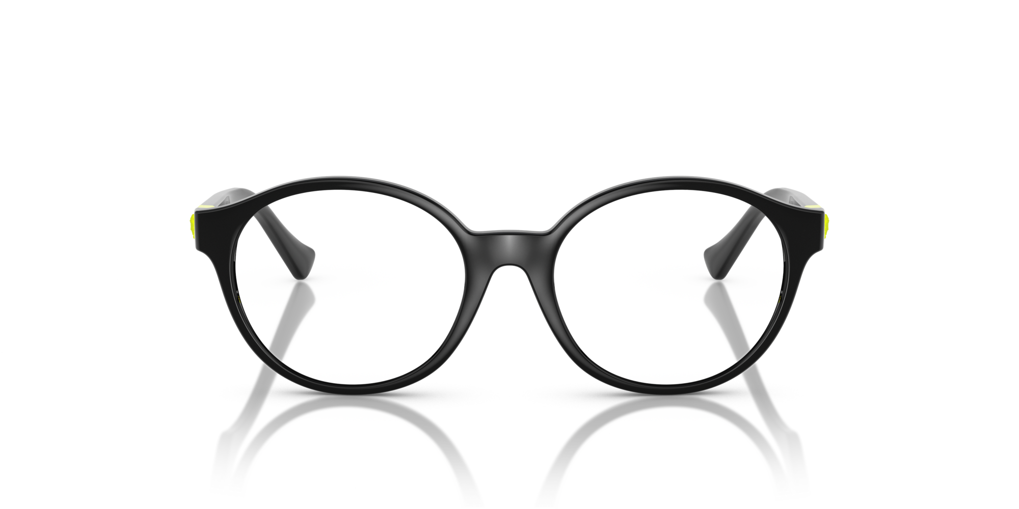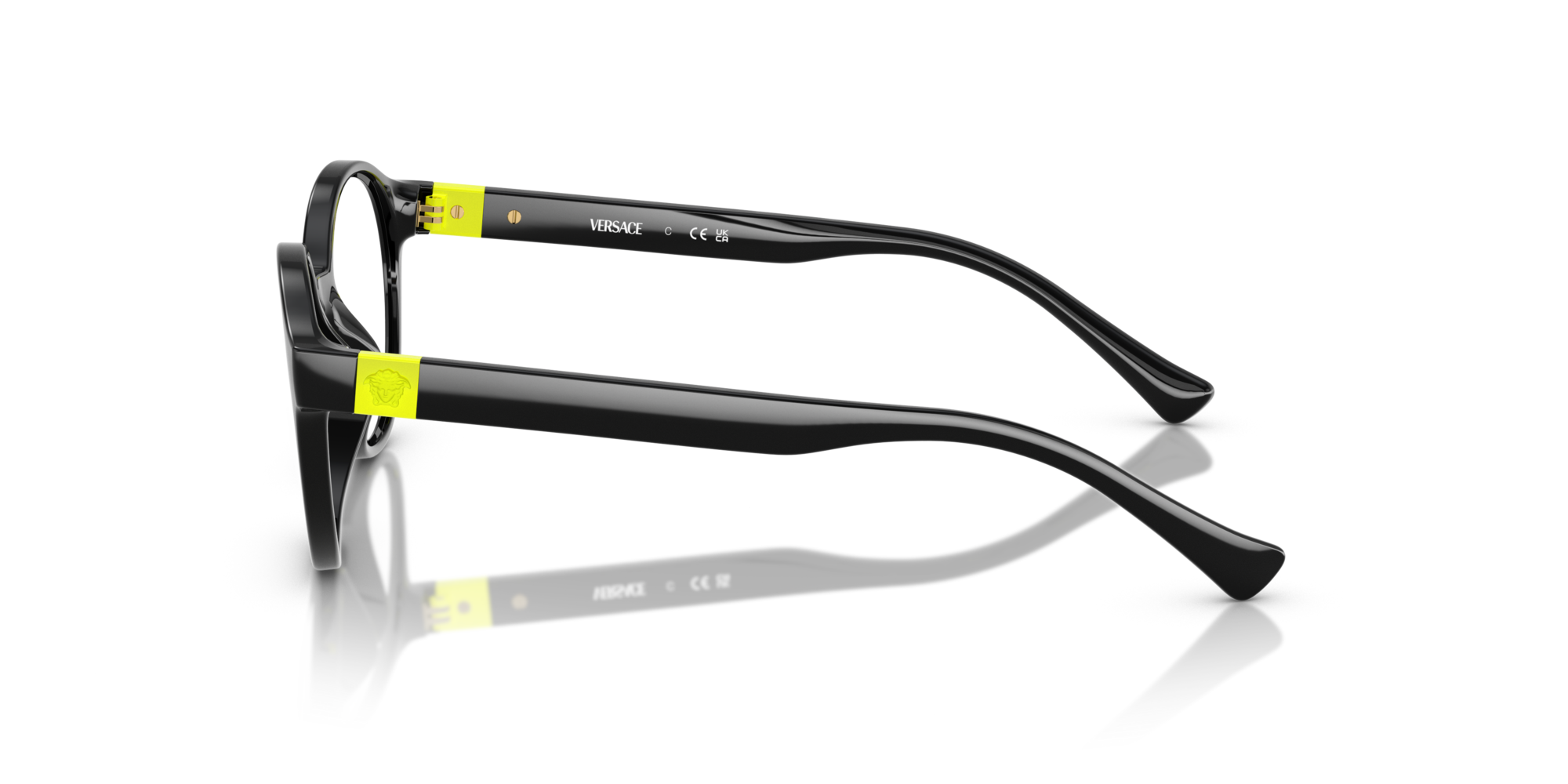 Versace kids 3007u vista gb1 è un occhiale da vista con montatura rotonda in nero lucido, pensato per un look deciso ma proporzionato al volto dei più giovani. Il frontale in propionato presenta cerchi ampi e pieni, con un ponte sagomato che accompagna la linea morbida della struttura. Le lenti demo sono trasparenti, ideali come base per la personalizzazione ottica. Sulle aste nere spicca un dettaglio a inserto giallo fluo in prossimità della cerniera, arricchito dall’iconica medusa in rilievo, elemento distintivo del modello. Il contrasto tra il nero della montatura e l’accento acceso laterale rende questo occhiale immediatamente riconoscibile. Con calibro 48 e ponte 16, mantiene un equilibrio visivo compatto, con una presenza grafica netta e contemporanea.