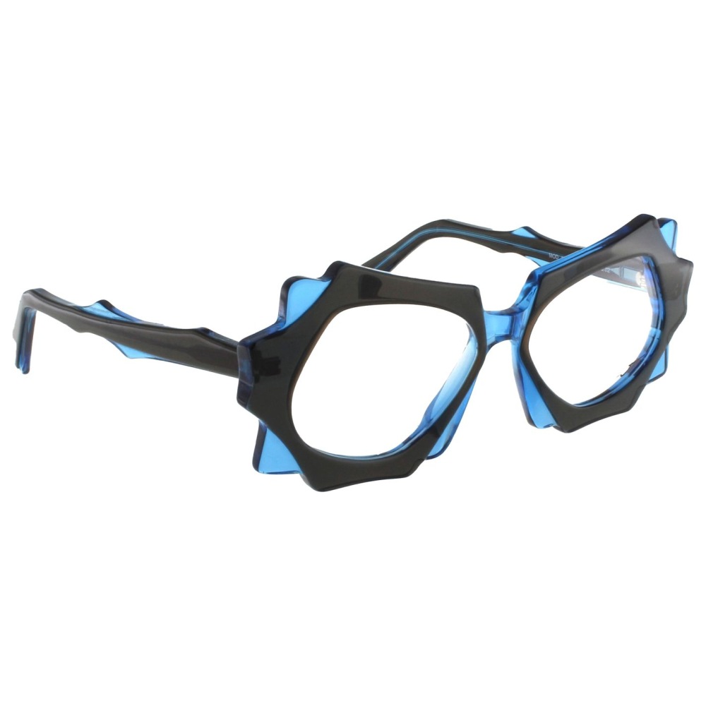 Viero ivp1221 è un occhiale da vista dalla montatura squadrata con costruzione scultorea e profilo sfaccettato, pensato per chi cerca un design fuori dagli schemi. Il colore c02 top blu azzurro combina un frontale blu molto scuro con un secondo livello interno e laterale in blu azzurro trasparente, creando un effetto stratificato ben visibile lungo il perimetro delle lenti e sulle aste. La montatura è realizzata in plastica e si distingue per i bordi irregolari, quasi geometrici, che aggiungono profondità al disegno del frontale. Le lenti demo sono trasparenti, come tipico degli occhiali da vista, e lasciano risaltare la particolare lavorazione del doppio volume. Anche le aste riprendono il contrasto cromatico tra blu scuro e azzurro, con terminali sagomati che seguono il linguaggio deciso del frontale. Calibro 53 mm.